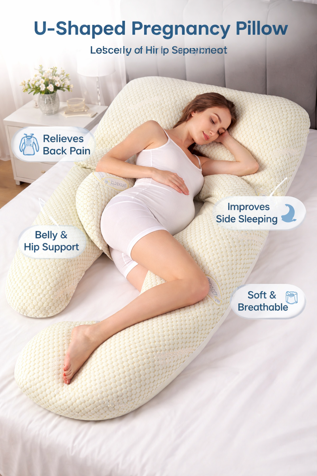 U-Shaped Pregnancy Support Pillow – Full Body Maternity Pillow for Belly, Back & Side Sleeping Comfort